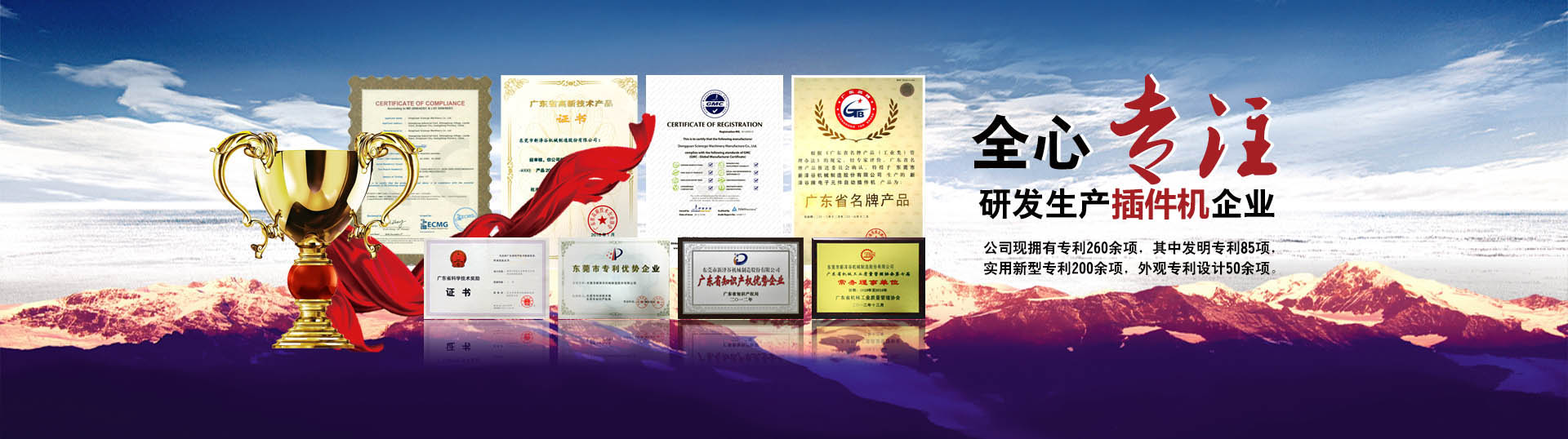 被广东省科学技术厅,广东省财政局、广东省地方税务局授予“高新技术企业”的称号。2000系列卧式插件机、3000系列立式插件机、4000系列卧式联体插件机获得欧盟机械安全CE认证。